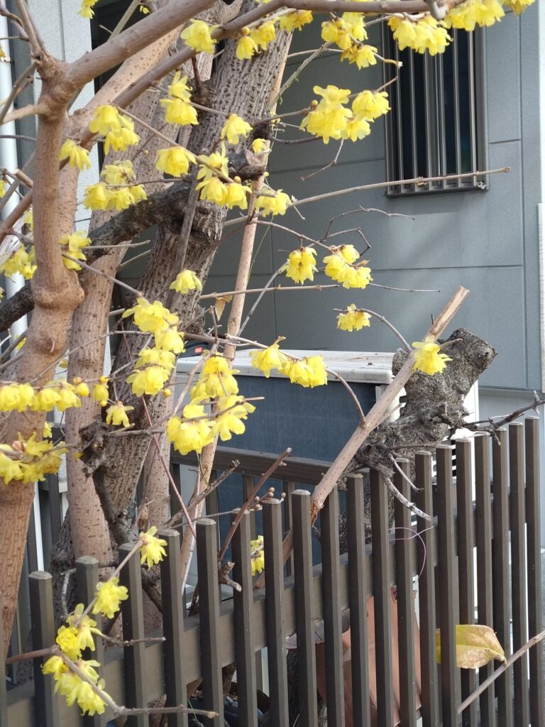 写真は、全粒粉のパンではありません。近所で咲いている蝋梅の花。